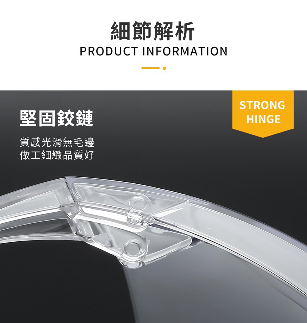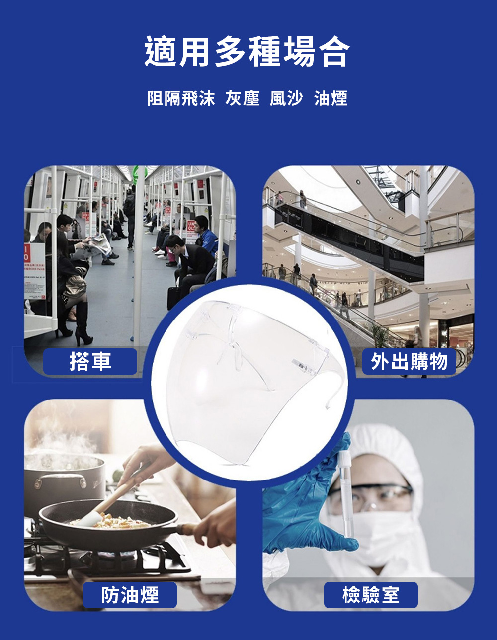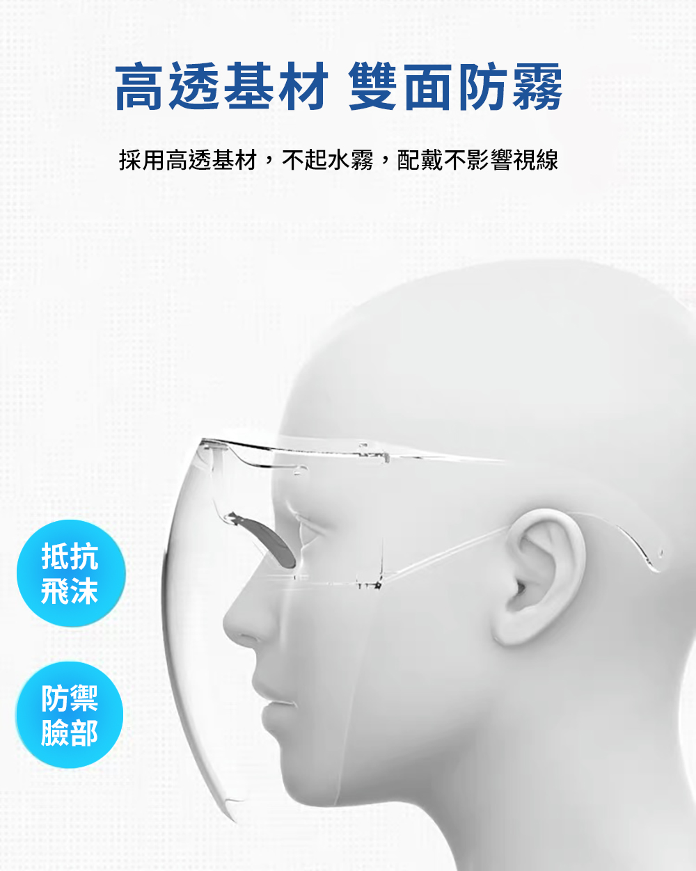 1. 有效阻擋飛沫、油汙、灰塵等。2. 高基材不易起霧,不影響視線。3. 視野清楚。4. 輕巧服貼設計,易於佩戴。5. 阻隔飛沫之餘不焗促。6. 可清洗重用,環保不浪費。7. 適合在公共場所佩戴。![]()