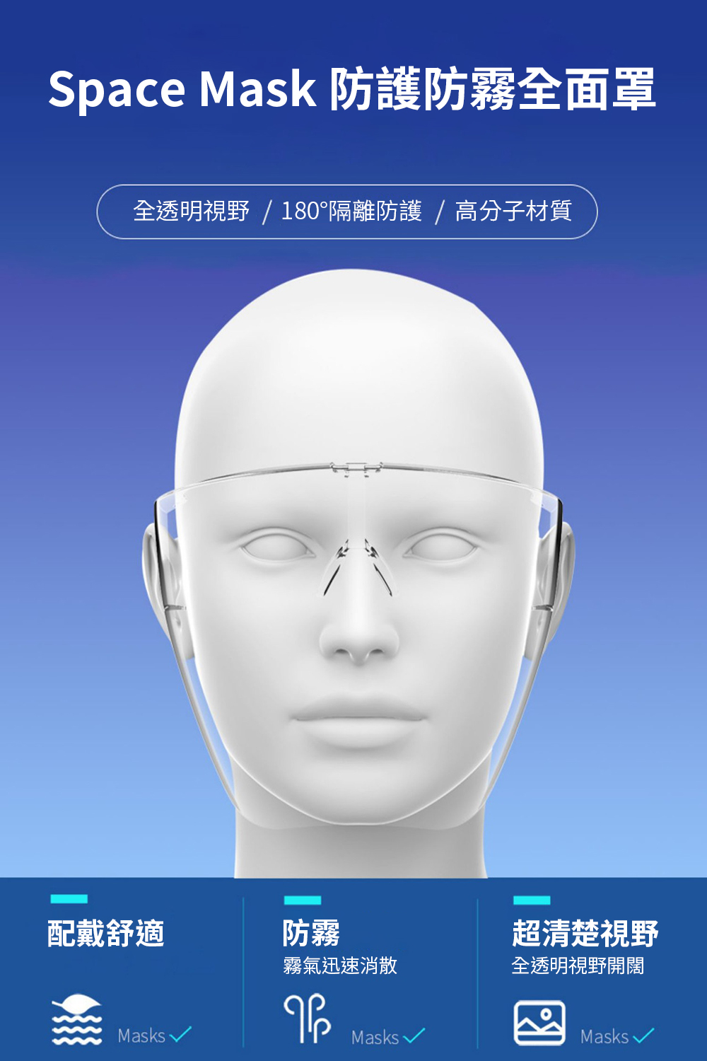 Space Mask 防護防霧全面罩(兩色選)鼻托可拆卸戴眼鏡者可適用