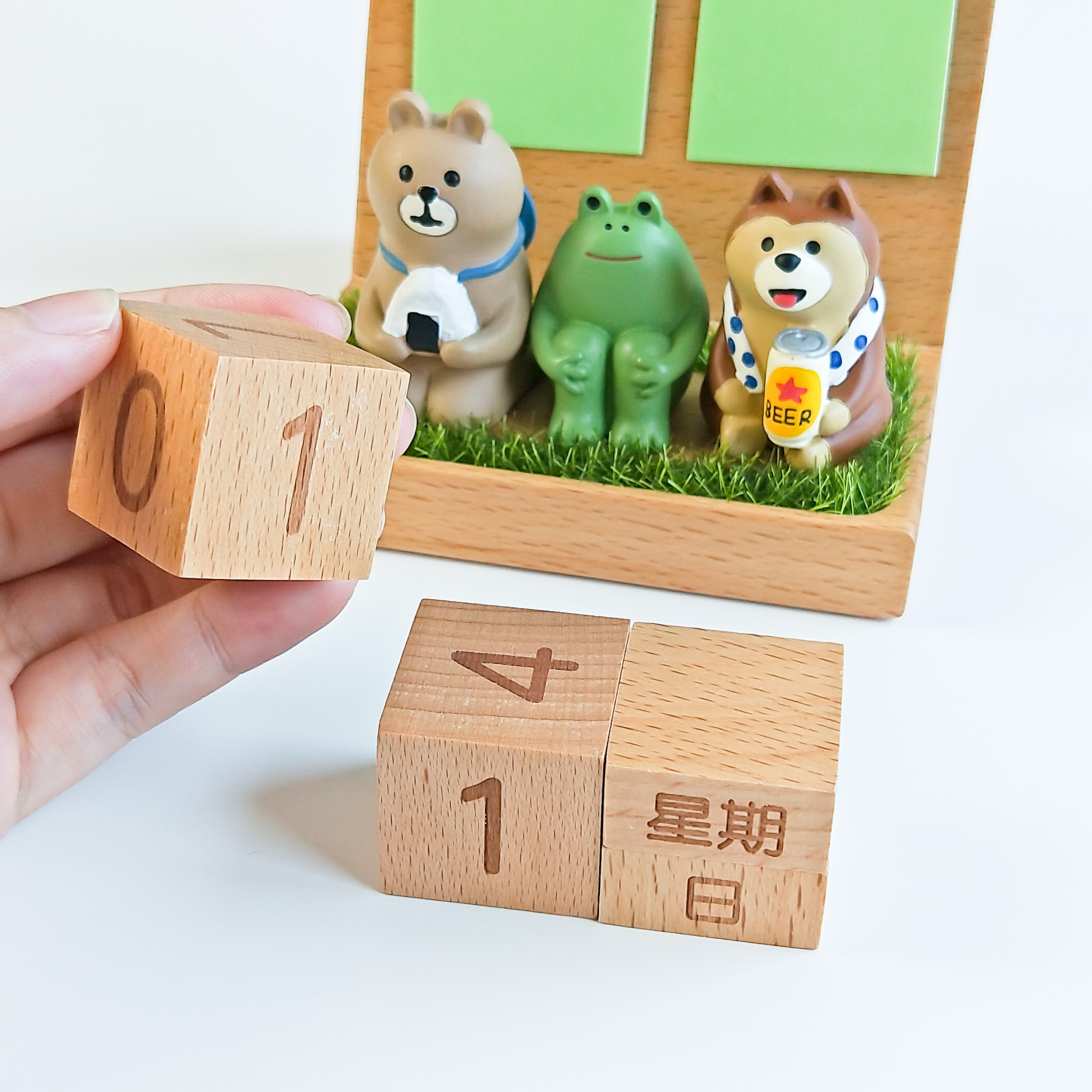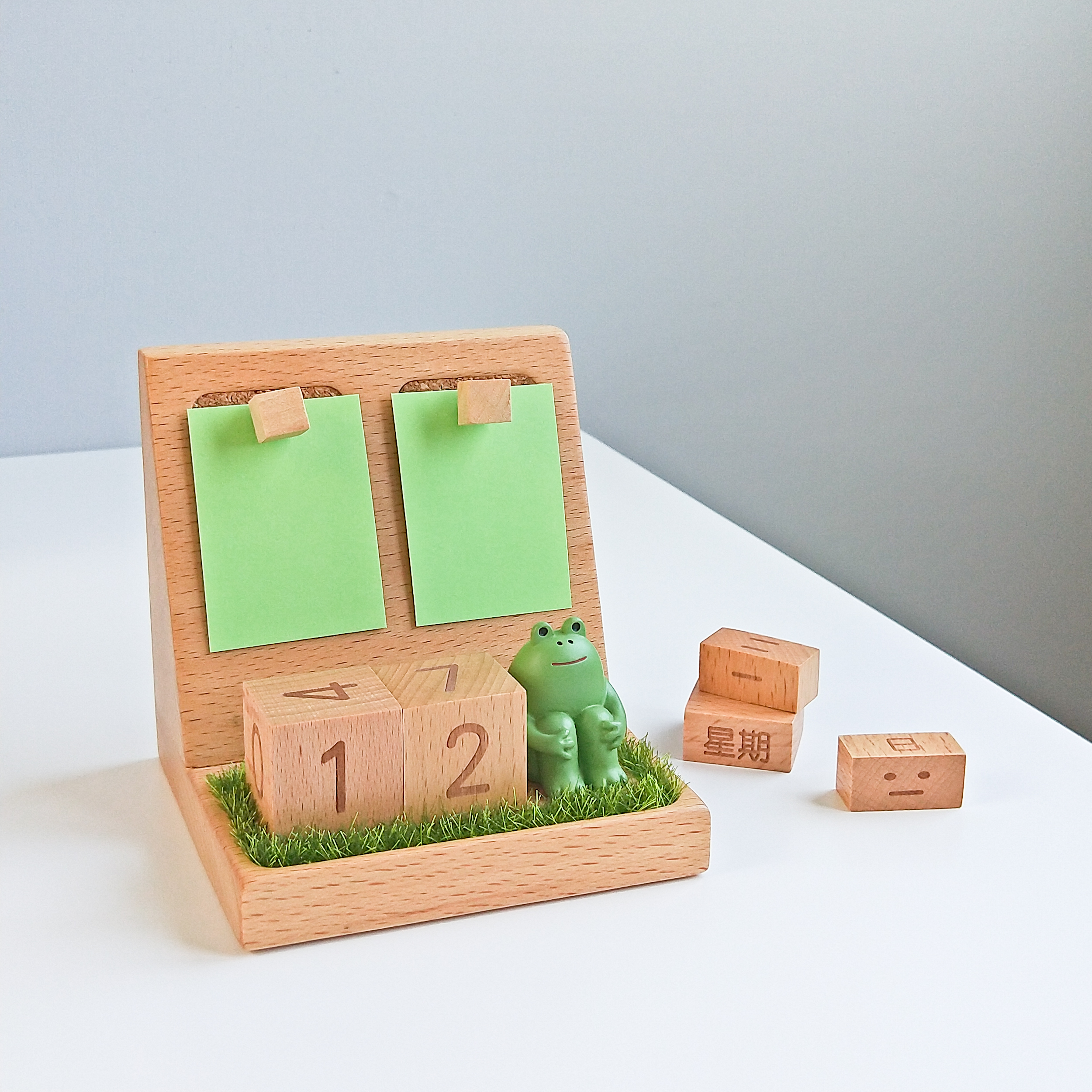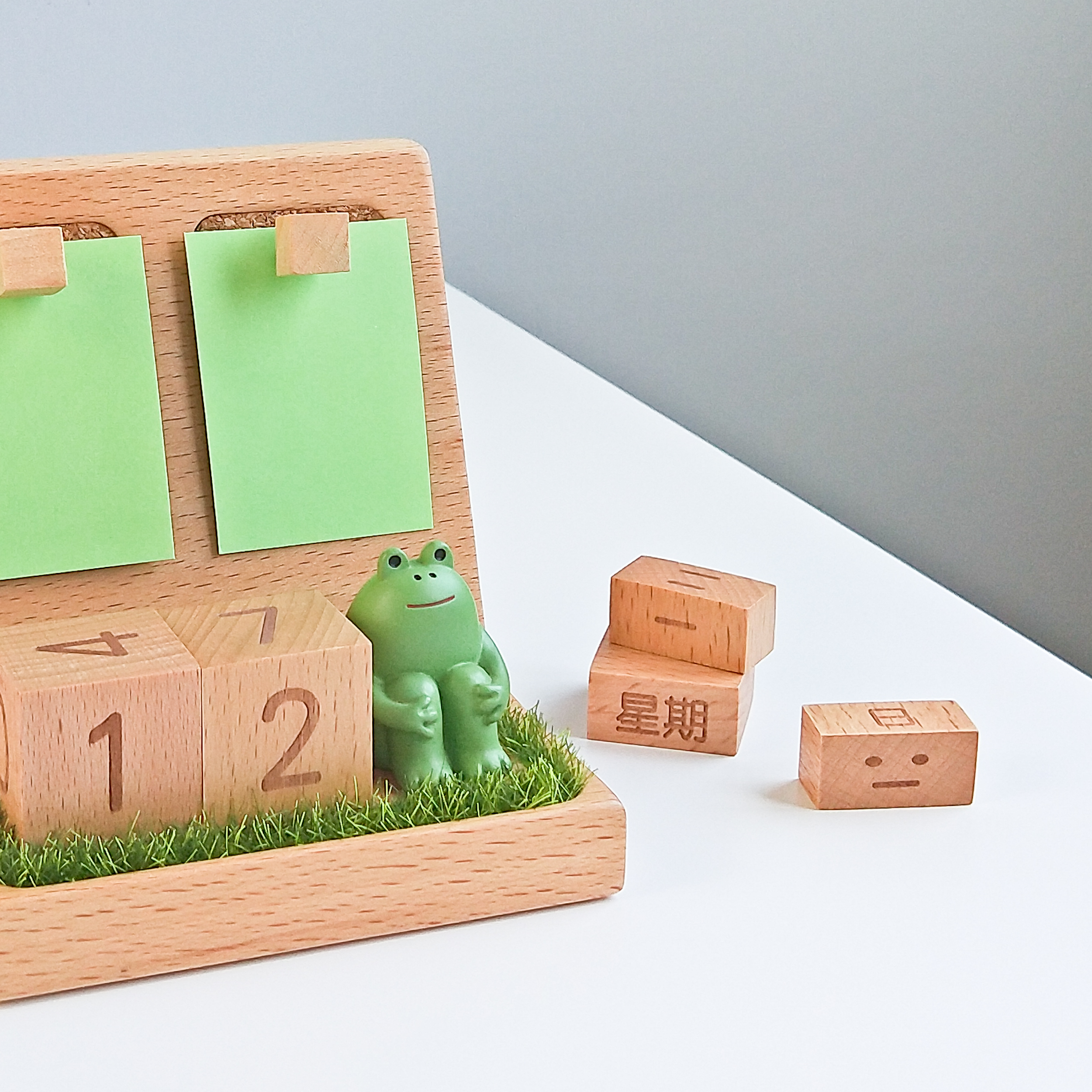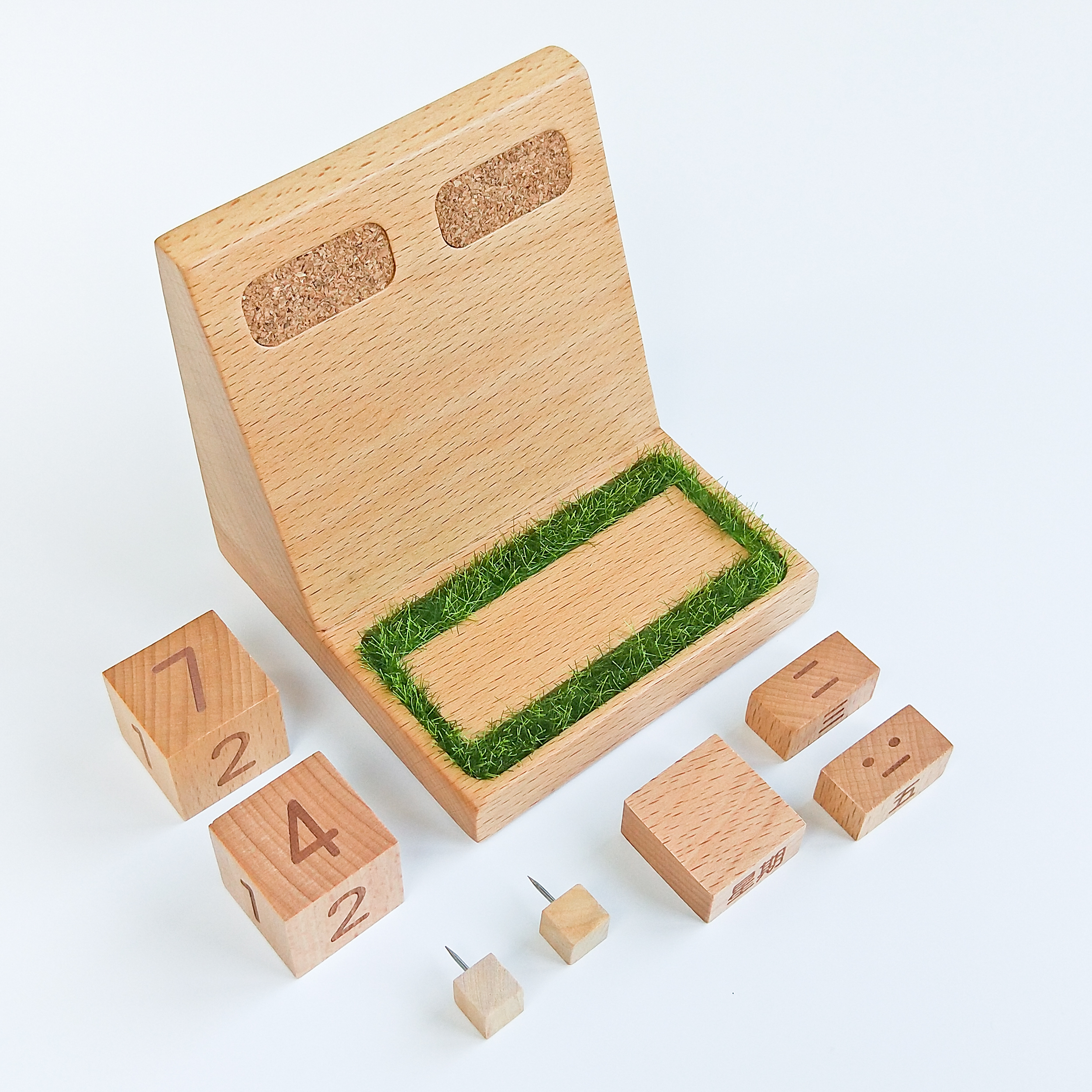 尺寸:-10 x 10 x 10 cm材質:-歐洲紅櫸木/三色纖維草規格:-名稱:小草堆萬年曆