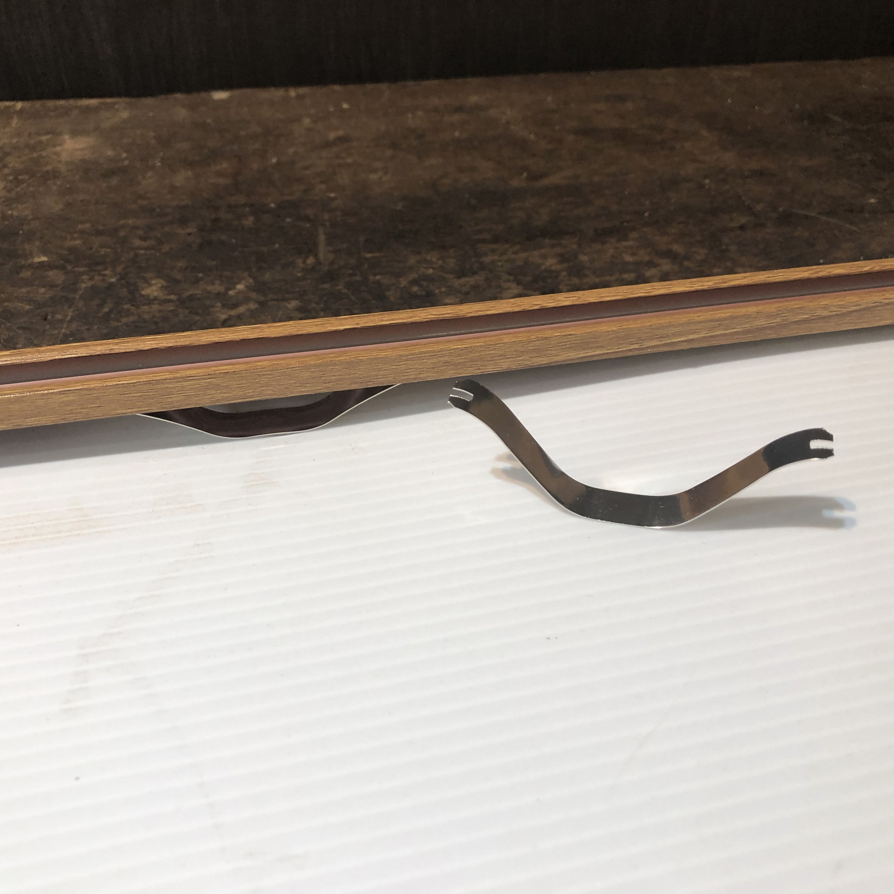 將背板溝槽裡的彈簧片取出,可用尖嘴鉗、鑷子、或是一隻摩擦力較大的尺把他翹出來,整個板子就鬆了。